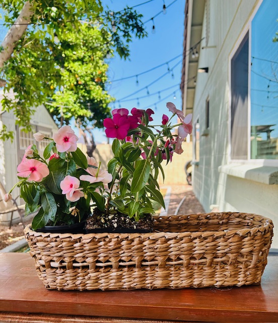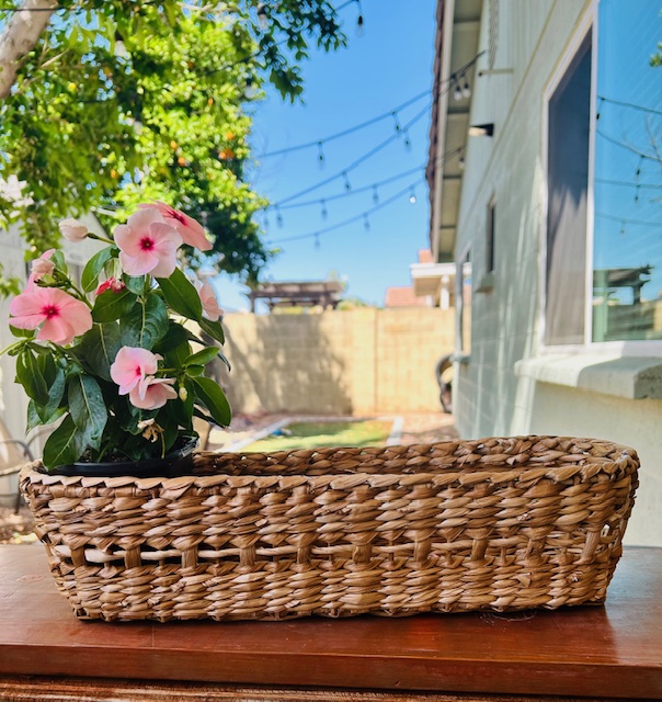 Last summer we remodeled half of our backyard. It was quite a DIY project. We demo’d the patio, put in pavers, tore out concrete. Whew! While it’s about 98% of the way finished, we’re still working on plants and decor throughout the area. Last weekend my goal was to find the perfect pots and planters for some palm trees and herbs. I spent hours on Pinterest finding the perfect inspiration. I went to several stores and I was just disappointed. I couldn’t find the styles I was looking for and everything seemed so expensive. I’m sure you’ve all run into this problem. You just can’t find what you’re picturing. I constantly see tons of baskets, boxes, and other containers that are super cute. But you can’t put a plant in them. Or can you???!